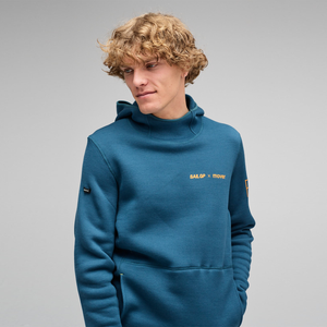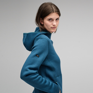 Tech fleece pullover hoodie, 100% merino wool, 240 GSM breathable knit, highly thermoregulating properties, no static electricity, unisex straight fit, flatlock seams, kangaroo pocket.